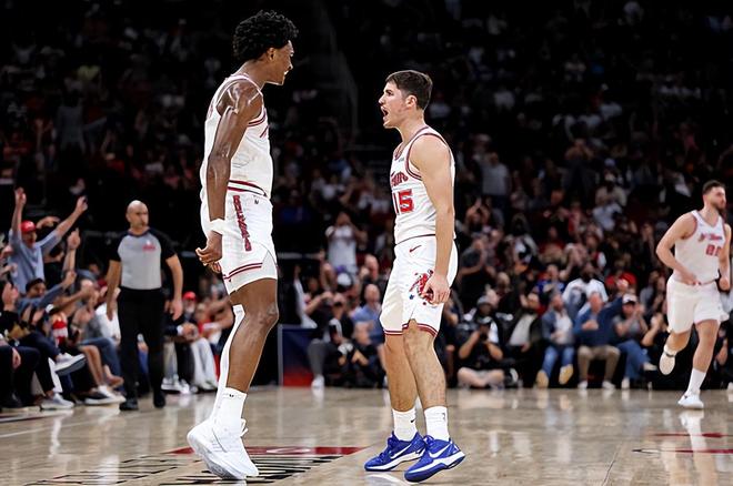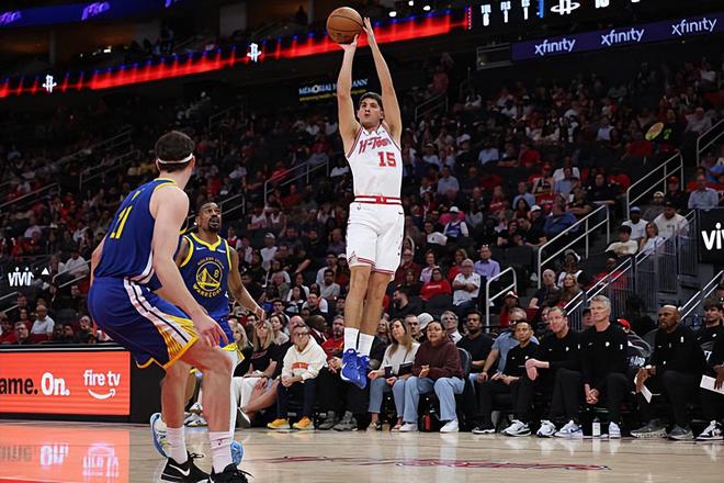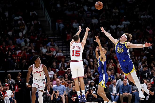 本場(chǎng)比賽中,火箭雖然輸?shù)袅吮荣?,但是球?duì)的替補(bǔ)后場(chǎng)新星里德-謝潑德(Reed Sheppard)的表現(xiàn)絕對(duì)是非常出色的。謝潑德全場(chǎng)出場(chǎng)37分09秒,投籃19中12,三分線外12中6,得到了全場(chǎng)最高分30分外加3籃板6助攻的數(shù)據(jù),還有3次失誤和4次犯規(guī),正負(fù)值也是達(dá)到了全隊(duì)最高的+11。謝潑德在進(jìn)攻端簡(jiǎn)直是勢(shì)不可擋,他展現(xiàn)出了超強(qiáng)的投射能力,他在中遠(yuǎn)距離投籃方面的表現(xiàn)實(shí)在是太突出了。在火箭其他球員普遍手感不佳的情況下,謝潑德成為了球隊(duì)在進(jìn)攻端的最強(qiáng)火力點(diǎn)。不夸張地說,要不是有謝潑德在進(jìn)攻端的大爆發(fā),火箭可能早就繳械投降了。不可否認(rèn),謝潑德在防守端的表現(xiàn)確實(shí)是很不理想的水平,但是他在進(jìn)攻端對(duì)于球隊(duì)的貢獻(xiàn)度也要遠(yuǎn)高于他在防守端對(duì)于球隊(duì)的負(fù)面影響。