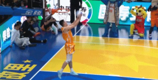 第5位出場的是四川球員劉冠杉,他嘗試拉桿反扣連續(xù)兩次失敗,最后完成勉扣得到35分。