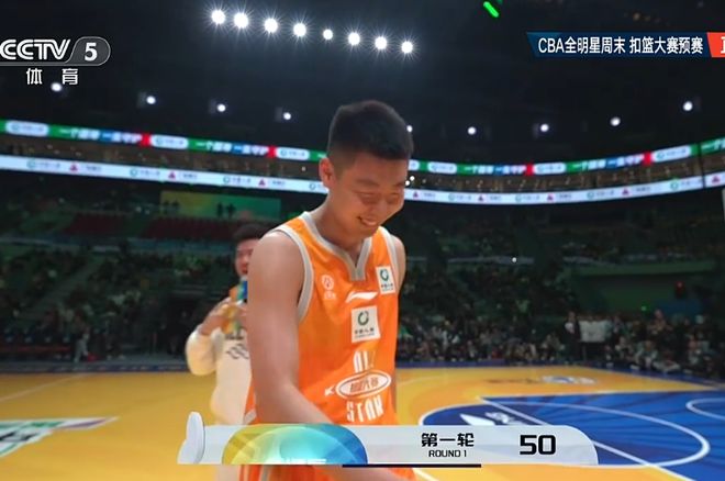 第6位出場的是遼寧球員俞澤辰,他嘗試轉體拉滿弓大風車扣飛,隨后360轉體雙手暴扣成功獲得50分滿分。