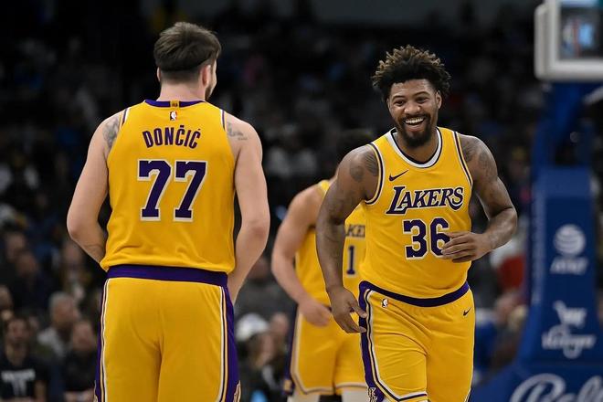 本場比賽,湖人隊取勝最大的功臣,是東契奇和里弗斯,但球隊正負值最高的,卻并不是他們,而是一位角色球員,身高191cm的妖衛(wèi)馬庫斯-斯瑪特。老詹不打,今天斯瑪特被頂?shù)搅诵∏颁h的位置,首發(fā)出戰(zhàn),主要跟尼克斯4年1.5億先生布里奇斯對位。今天的比賽,斯瑪特完全鎖死了布里奇斯,后者全場6投0中,三分球4投0中,全場得分掛蛋,只有6籃板5助攻1搶斷1蓋帽進賬。