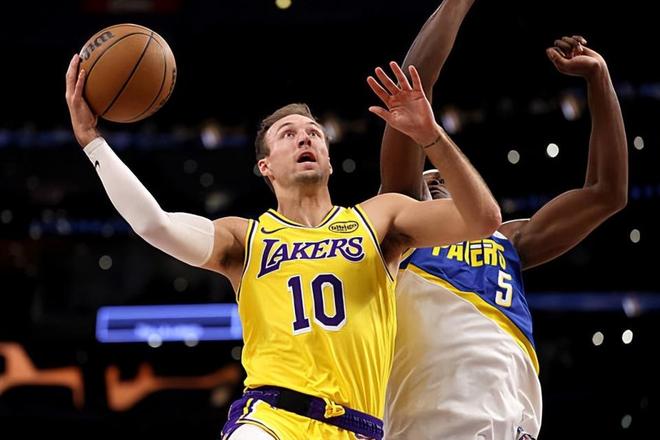 本場比賽中,湖人的替補(bǔ)后場新援盧卡-肯納德(Luke Kennard)依然保持了自己這段時(shí)間的良好狀態(tài)。肯納德全場出場26分51秒,投籃8中4,三分線外7中3,罰球1中1,得到了12分2籃板1助攻1搶斷的數(shù)據(jù),還有2次失誤和2次犯規(guī),正負(fù)值為0??霞{德在進(jìn)攻端依然是有著不俗的手感,他也是通過自己在外線投籃方面的超強(qiáng)能力得到了不少分?jǐn)?shù),為球隊(duì)第二陣容提供了不少的幫助。另一方面,肯納德在場上時(shí)球隊(duì)的空間本身就會(huì)變得更大,這也和他在投籃方面的威脅密切相關(guān)。肯納德的球權(quán)騎士并不多,戰(zhàn)術(shù)地位也相對來說比較有限,這也導(dǎo)致了他沒有辦法打出更加華麗的數(shù)據(jù),但即使是在這種情況下,他對于比賽的影響力也是有目共睹的,他也是為球隊(duì)的勝利做出了不小的貢獻(xiàn)的。