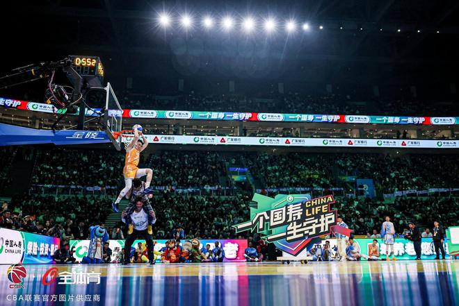 第三個出場的是預(yù)賽兩扣拿到100分滿分的遼寧本鋼球員俞澤辰。俞澤辰和隊友趙繼偉配合,趙繼偉將球拋到籃板側(cè)沿反彈后,俞澤辰接球背扣,這一扣創(chuàng)意拉滿,也得到了50分滿分。俞澤辰的第二輪扣籃壓力很大,因為他只有扣出50分才能追平張鼎巖的100分,把比賽拖入加賽。他仍然是和趙繼偉配合,趙繼偉將球拋到籃板上反彈后,俞澤辰接球轉(zhuǎn)身360度雙手扣籃,這一扣不論從配合的難度,還是扣籃的完成度都堪稱完美,最終俞澤辰得到50分滿分,比賽進(jìn)入拖入加賽環(huán)節(jié)。